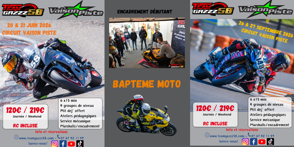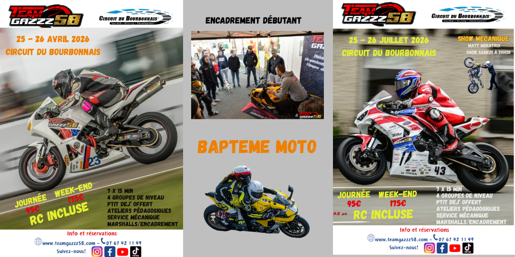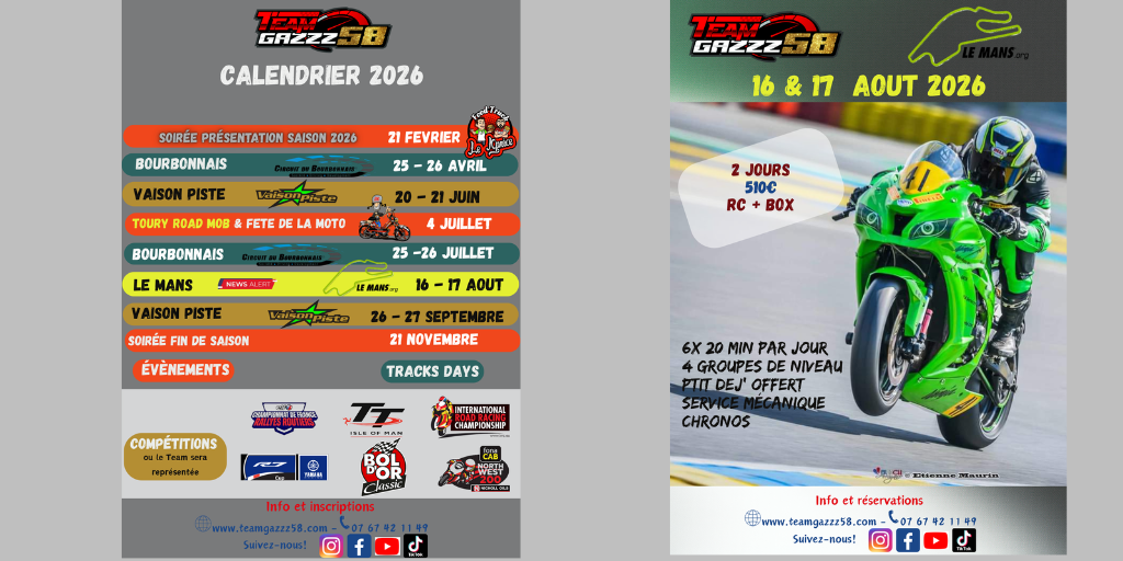 Soirée de Présentation – Saison 2026 Organisée par Teamgazzz58Salle des fêtes de Toury-LurcySamedi 21 févrierÀ partir de 19h Au programme ️ Menu Préparé par notre sponsor Food Truck – Le K’Price Remise des trophées Nous mettrons à l’honneur nos pilotes ayant représenté nos couleurs dans différents championnats français. ️ Places limitées Réservation obligatoire avant le 18 février Merci à tous […]